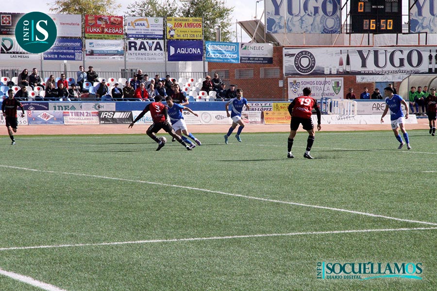 Comenzó bien el Socuéllamos con llegadas por banda a través de Carlos García y Siles pero sería el conjunto visitante el que se adelantaría en el marcador en el minuto 21 en una contra rápida que aprovechó el mejor jugador hoy de su equipo, Borja Cabanillas para batir a Adri López que llegó a tocar el balón.