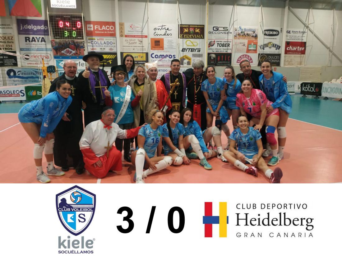 Victoria incontestable en el Gran Gaby de las socuellaminas frente al Heilderberg, un equipo situado en medio de la tabla. Los parciales han sido de (25-18/25-18/25-19) La jugadora MVP ha sido Amelia Portero del Kiele. Este partido era crucial de cara a los Playoffs. En el partido ha estado apoyando al equipo la alcaldesa de Socuéllamos, Conchi Arenas así como numerosos aficionados que han acudido disfrazados recién llegados del Entierro de la Sardina.