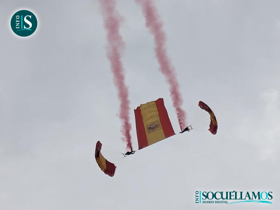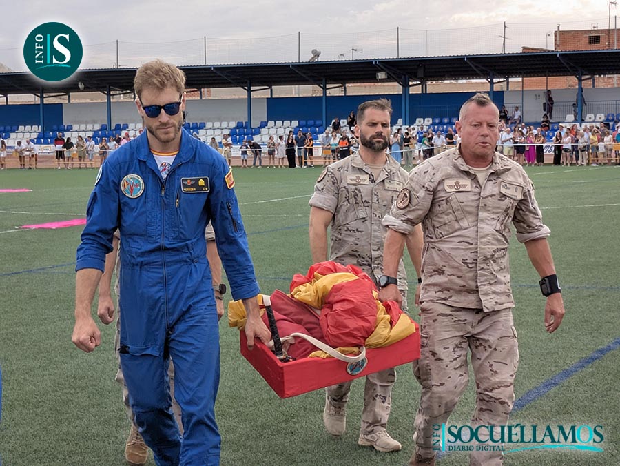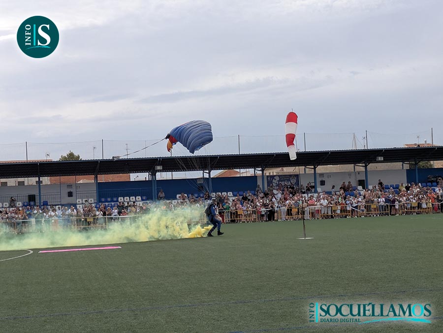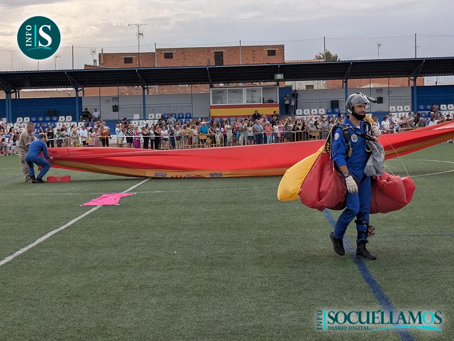El pasado domingo 7 de septiembre, Socuéllamos tuvo el privilegio de disfrutar de una exhibición paracaidista a cargo de la PAPEA (Patrulla Acrobática de Paracaidismo del Ejército del Aire), en la que seis paracaidistas saltaron desde un C-295. El evento se llevó a cabo en el Campo de Fútbol Paquito Giménez, donde más de mil personas pudieron disfrutar del espectáculo.