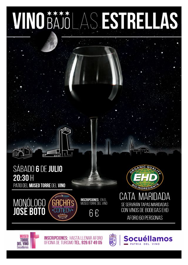 El próximo sábado 6 de julio a las 20:30 h. en el patio del Museo Torre del Vino vuelve VINO BAJO LAS ESTRELLAS esta vez el turno es para los vinos de Bodegas Hermanos Delgado. Se servirán tapas maridadas con vinos de esta bodega y la actuación, de Gachas Comedy será un monólogo de José Boto.
