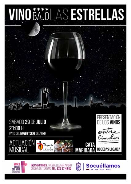 La concejalía de Turismo del Ayuntamiento de Socuéllamos ha organizado dos actividades bajo la denominación “Vino bajo las estrellas” con el objetivo de promocionar y dar a conocer los caldos de las bodegas socuellaminas en citas con la música y el humor como perfectos complementos.