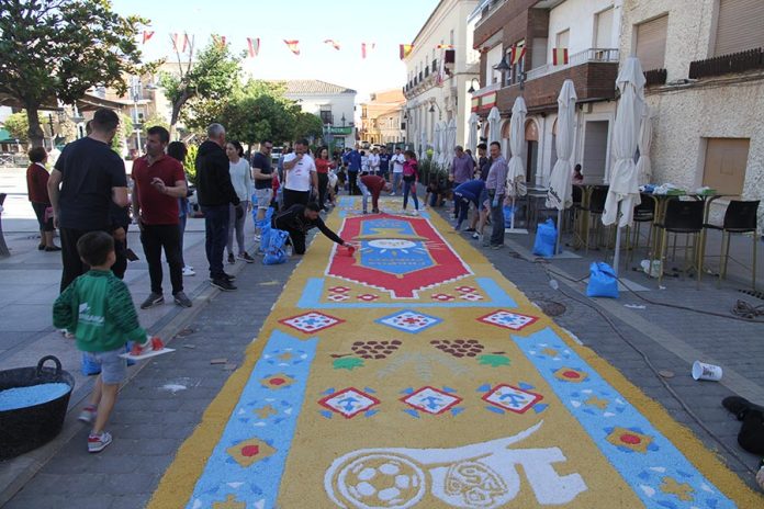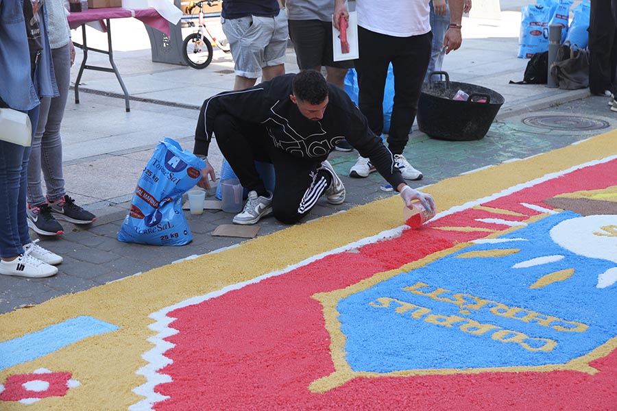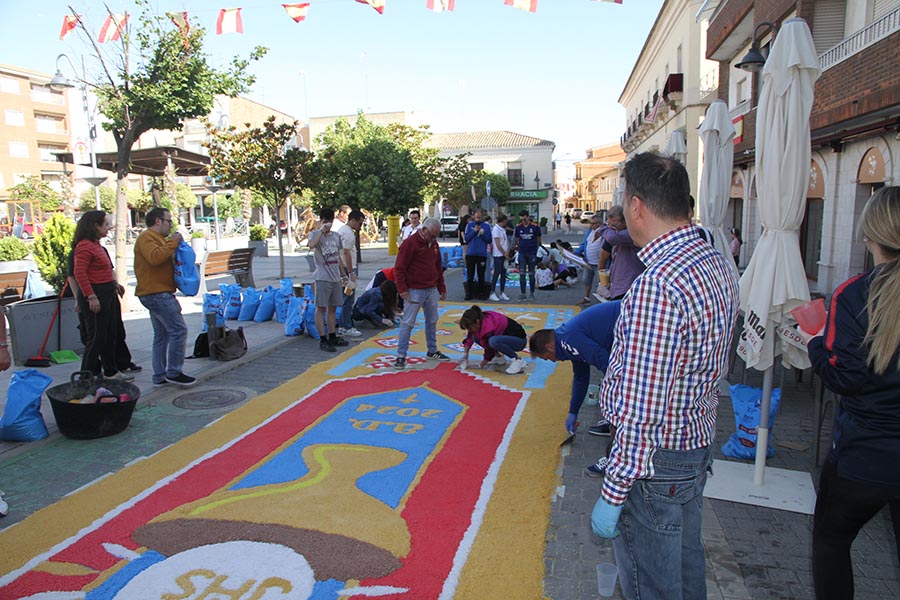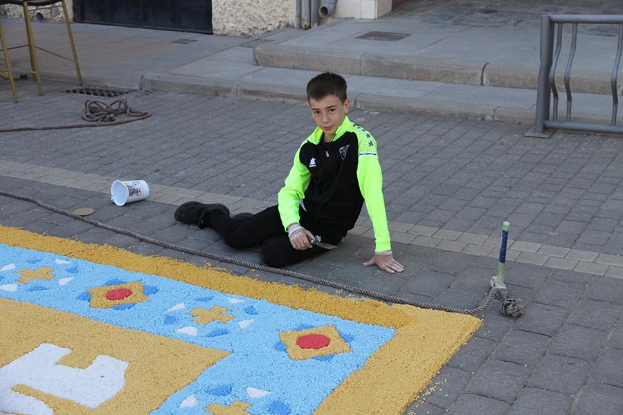 Desde tiempo inmemorial se engalanan las calles con el motivo de la Procesión del Corpus Christi (el Cuerpo de Cristo en latín) con tomillo, pintando los bordillos y colocando altares que los vecinos adornan con mimo, pero desde 2014 se introdujo una novedad que ya se está convirtiendo en tradición, a iniciativa de don Rafael Ruiz Mateos se hacen alfombras decorativas con motivos alusivos al Corpus hechas con sal coloreada por encima de las que pasa la Procesión a la altura de la Plaza de la Constitución. Aquí podemos ver un resumen de los distintos diseños que se han ido realizando a través de los años.