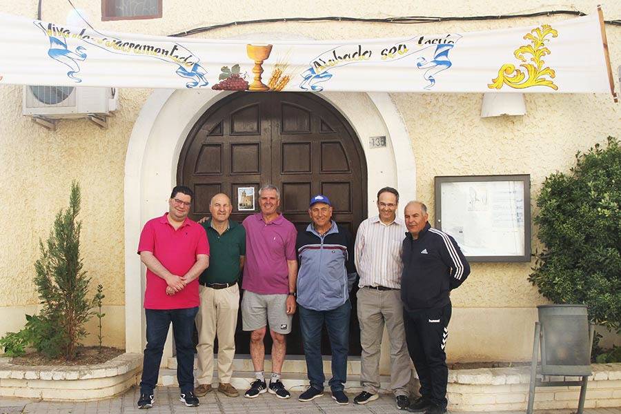 A las 19:00 h. se celebrará la Misa Solemne y al terminar esta la Procesión saldrá en dirección a la Iglesia de San José que es donde acaba. Aquí podemos ver a un grupo de voluntarios de Adoración Nocturna adornando la puerta de San José.