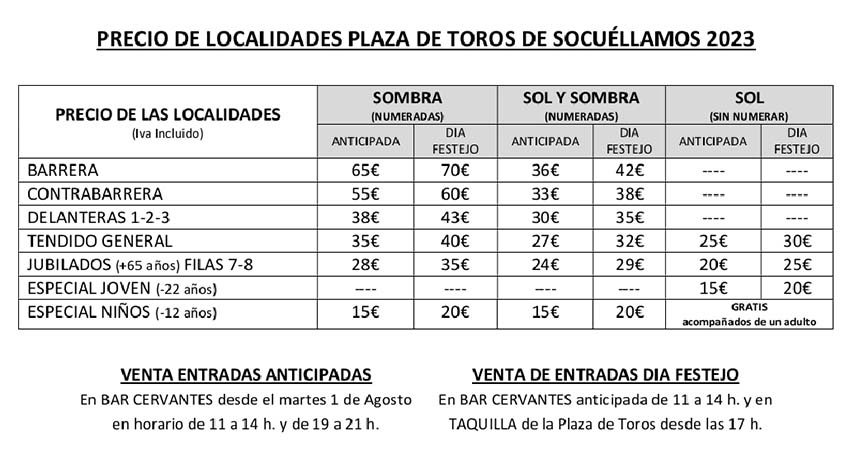Desde hoy 1 de agosto y hasta el domingo por la mañana se pueden adquirir de manera anticipada las entradas para el festejo taurino de la Feria y Fiestas. En horario de 11 a 14 horas y de 19 a 21 horas en el Bar Cervantes se pueden adquirir los boletos.